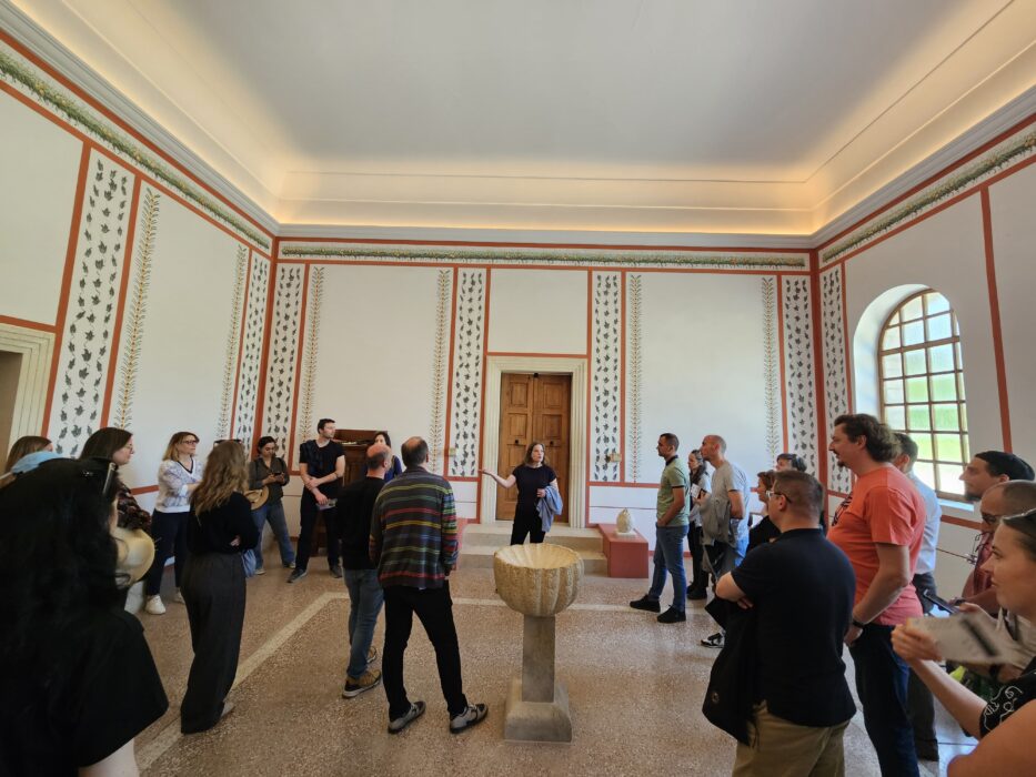 On the third day, participants visited the Archaeological Park Carnuntum—Austria’s most renowned Roman archaeological site. A guided tour of the reconstructed Roman city quarter and heated bathhouse was offered, along with a presentation of the park’s interpretive concept. Simultaneously, a public project kick-off event was held in Carnuntum, where schoolchildren creatively designed a prototype costume for the project mascot, which will represent the visual identity of the Roman theme region along the Danube Limes.
