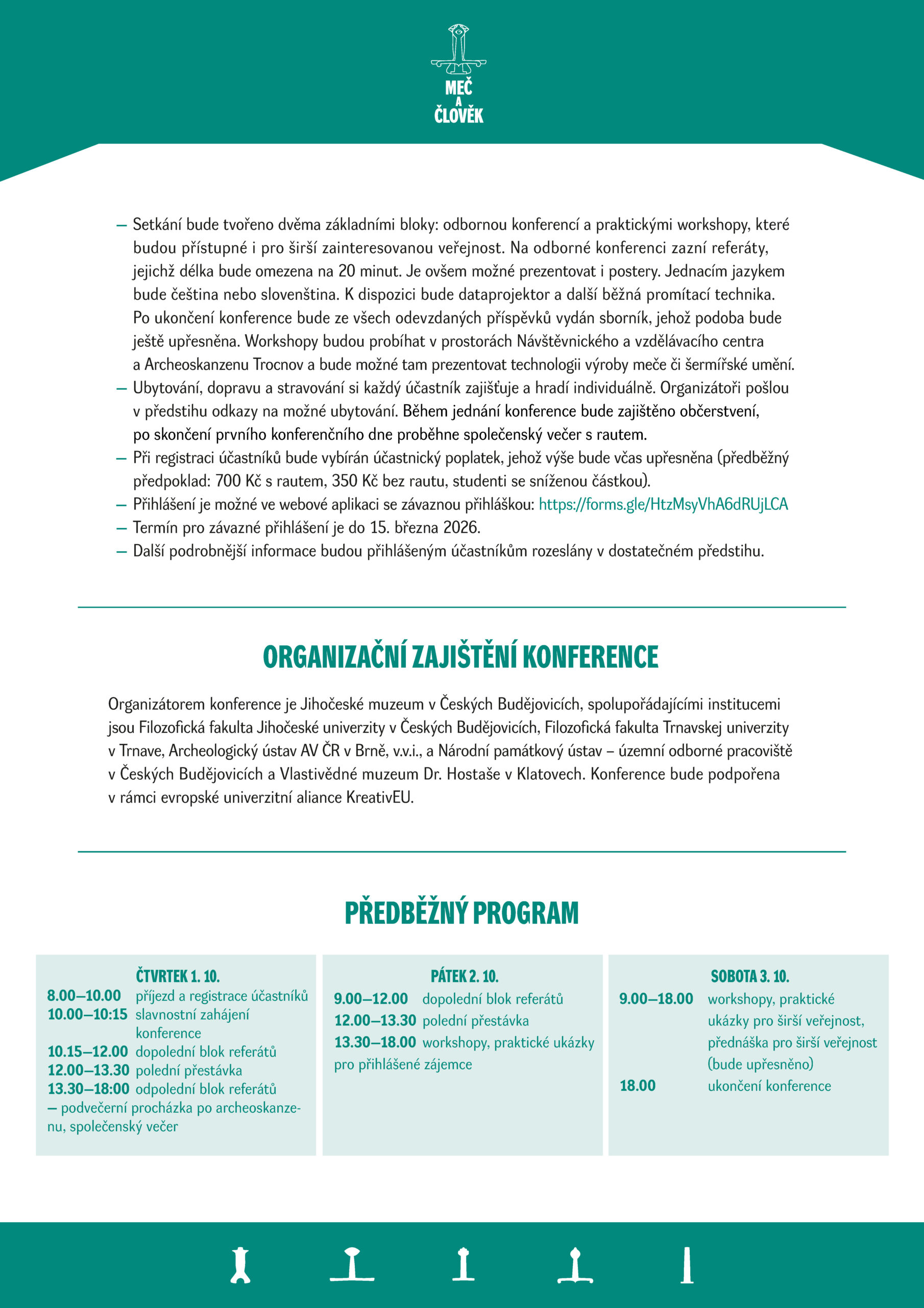 Konference se uskuteční ve dnech 1. až 3. 10. 2026 v prostorách Návštěvnického a vzdělávacího centra Jihočeského muzea a Archeoskanzenu v Trocnově.