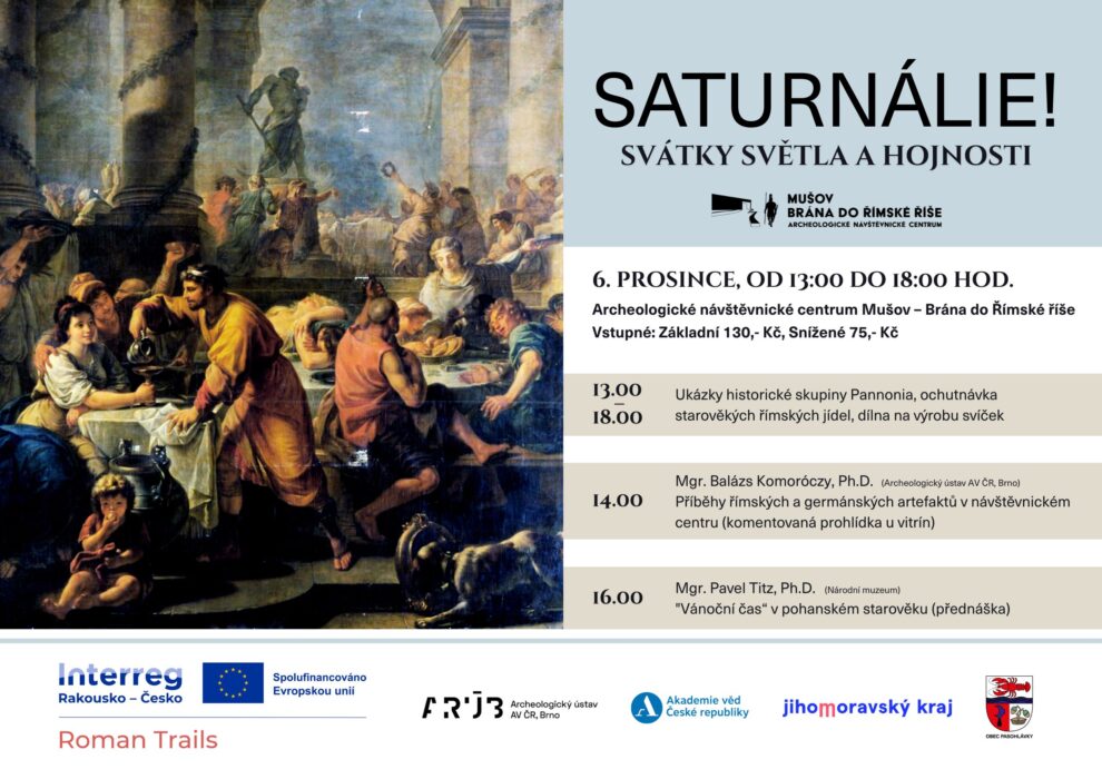 V sobotu 6. 12. 2025 proběhla v Návštěvnickém centru na Mušově tematická akce věnovaná Saturnáliím, římským svátkům zimního slunovratu. Návštěvníci měli možnost poznat, jak mohl vypadat slavnostní čas v římském prostředí téměř před dvěma tisíci lety.